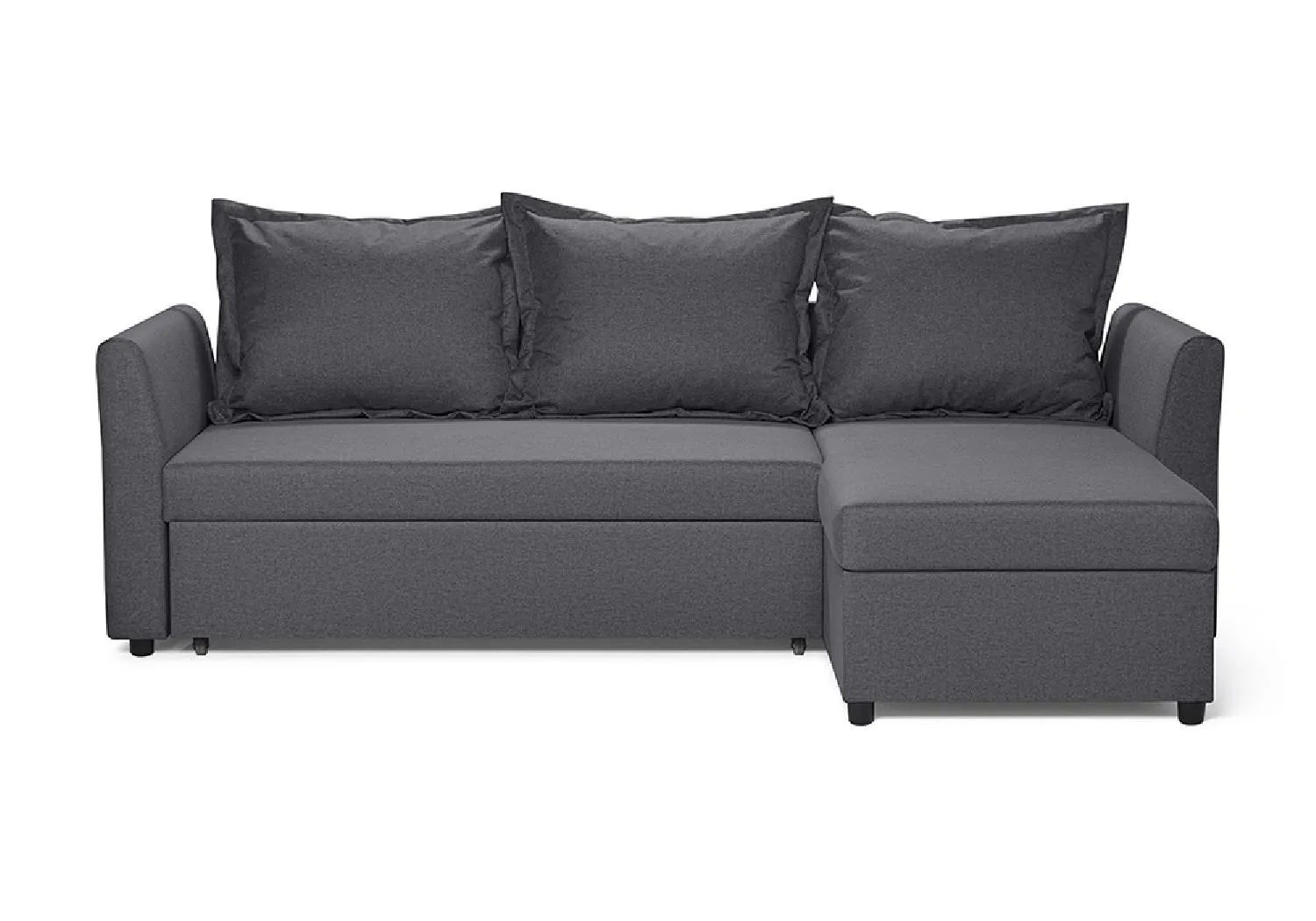 Лаконичная модель с четко выраженной геометрической формой и декоративными подушками. Спокойные тона обивки из практичной ткани рогожка и умеренные габариты позволяют разместить диван даже в небольшой комнате и использовать как дополнительное или основное спальное место. Дополнительным преимуществом является универсальность установки угла.